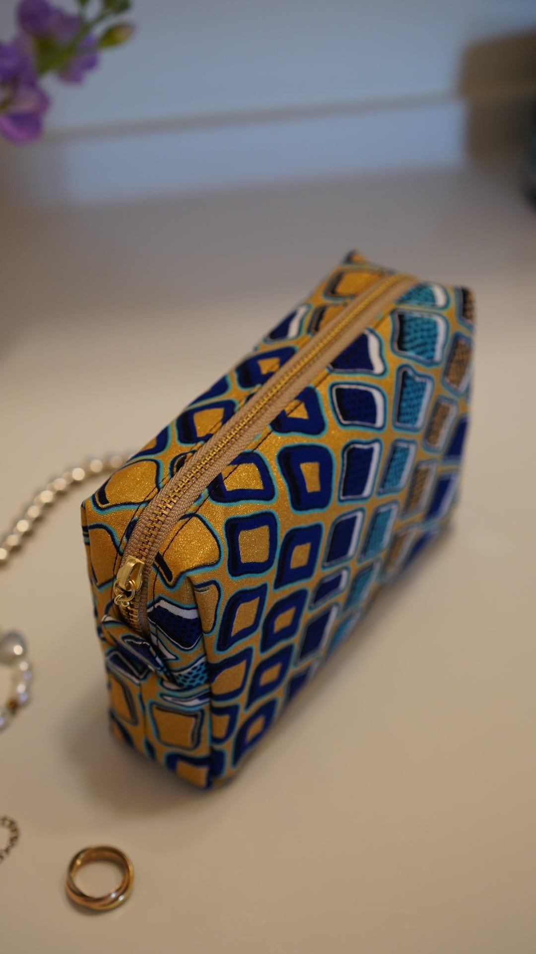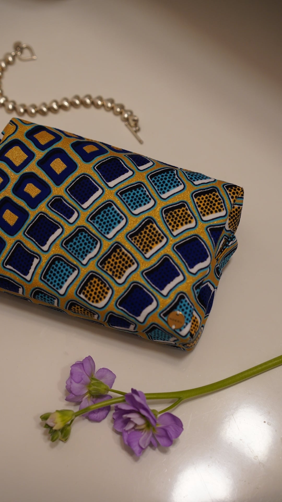 カラフルで軽やか。まるで空気をまとったような使い心地。キラキラと輝く最高品質のアフリカンファブリックを使用しました。