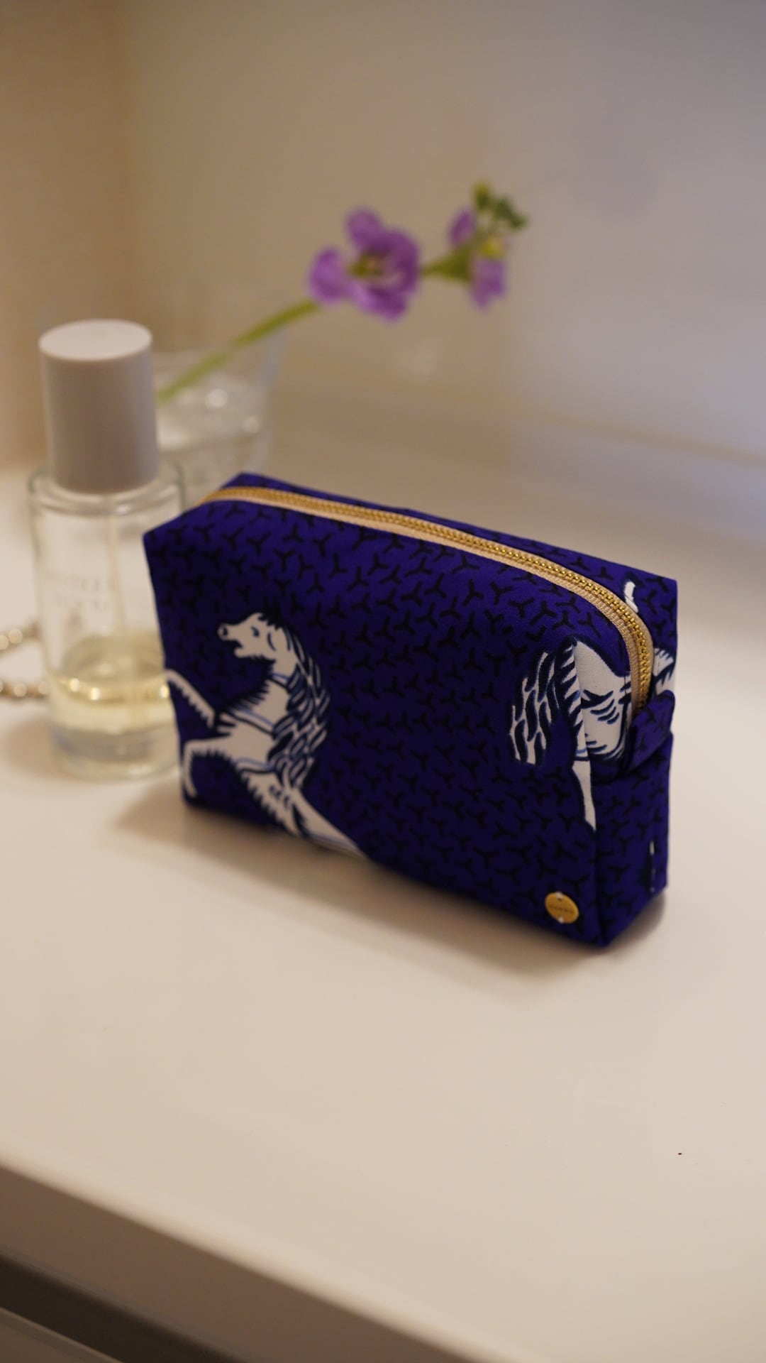 大きく開くファスナーとマチのある立体的なフォルムで、コンパクトながらしっかり収納。旅先や日常使いにもぴったりです。