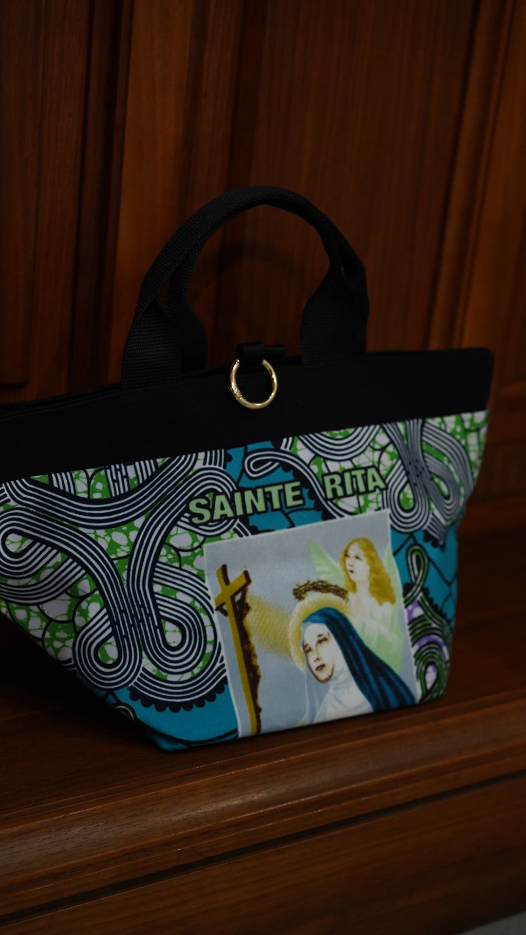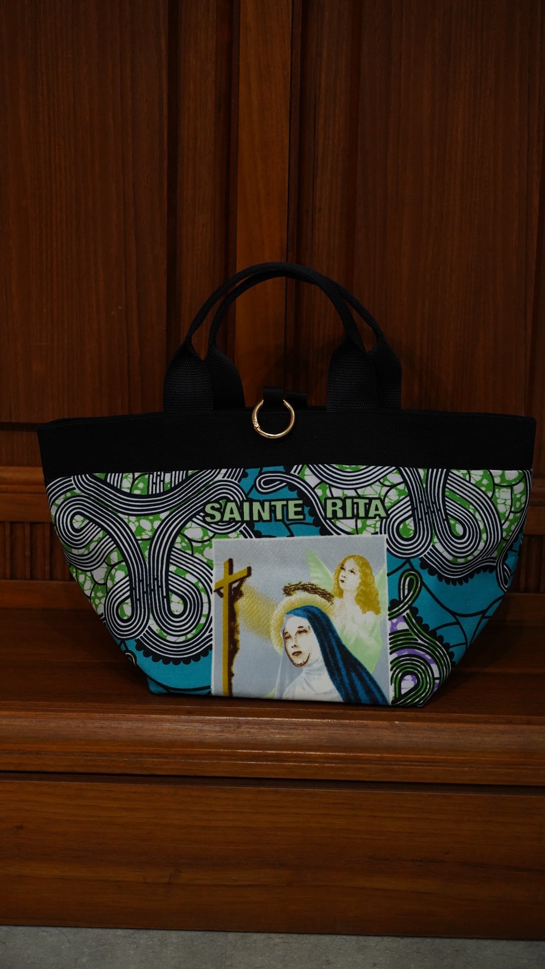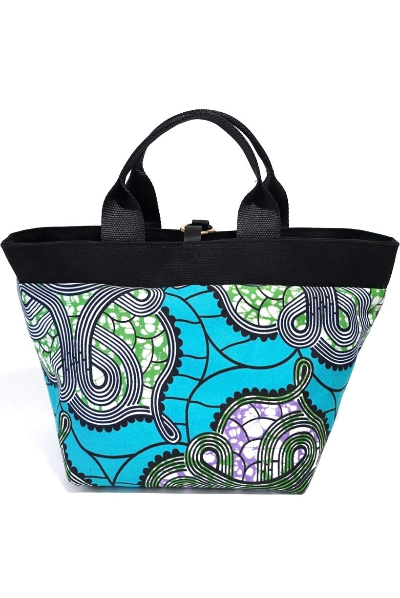 帆布(黒)×アフリカンファブリックの1点物リバーシブルバッグ。