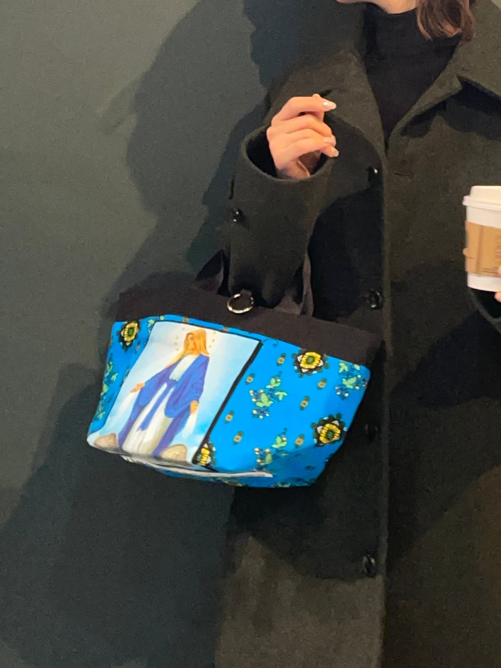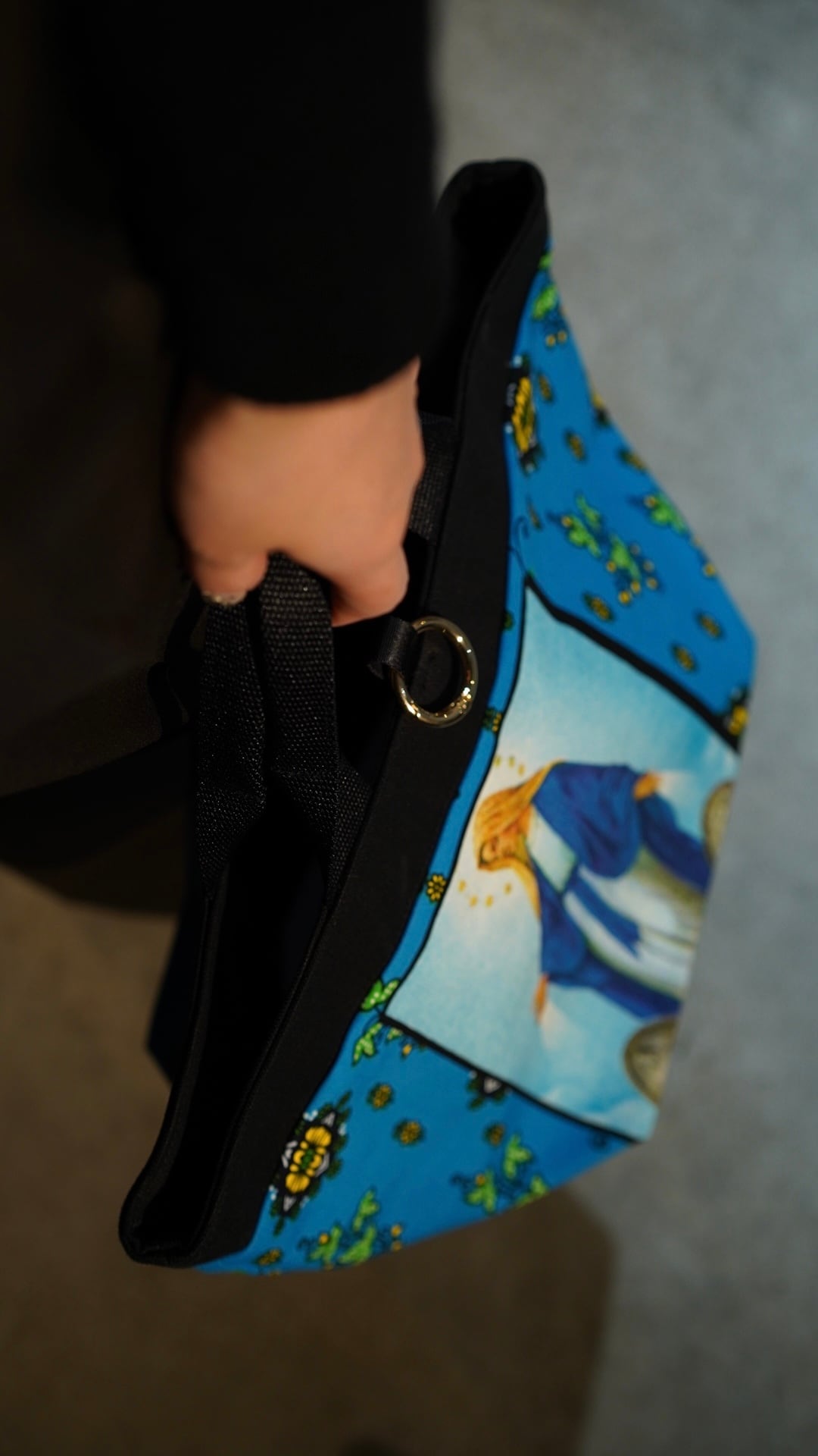 帆布(黒)×アフリカンファブリックの1点物リバーシブルバッグ。