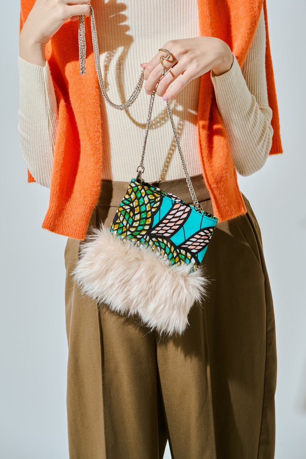 柔らかく艶やかなエコファーと、存在感のある柄生地を組み合わせたミニバッグ。日本製の上質なエコファーは、手に取るたびに贅沢な質感を感じられます。コンパクトながら印象的。コーディネートを格上げしてくれます。秋冬から春先まで、シーズンを超えて活躍します。