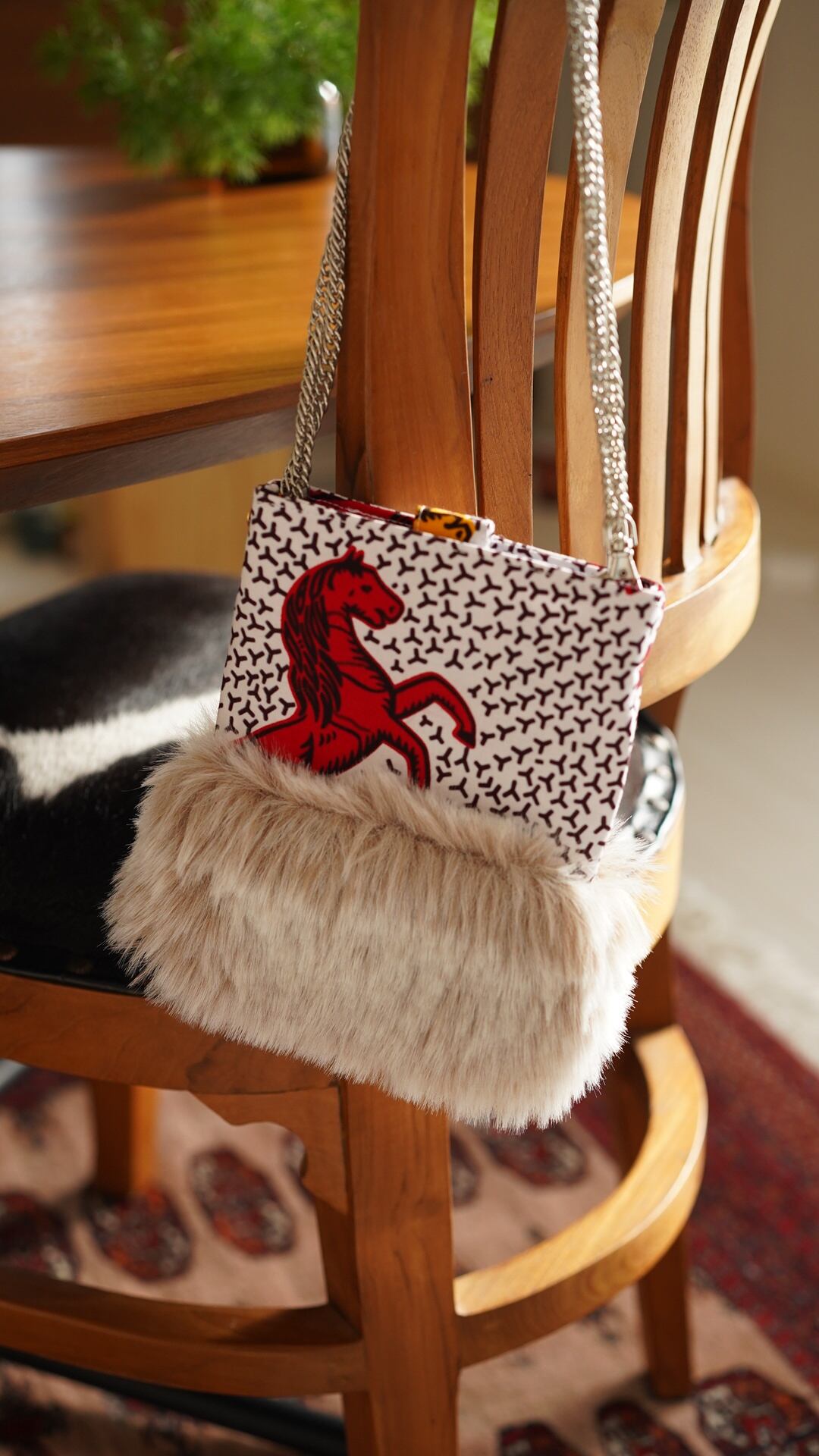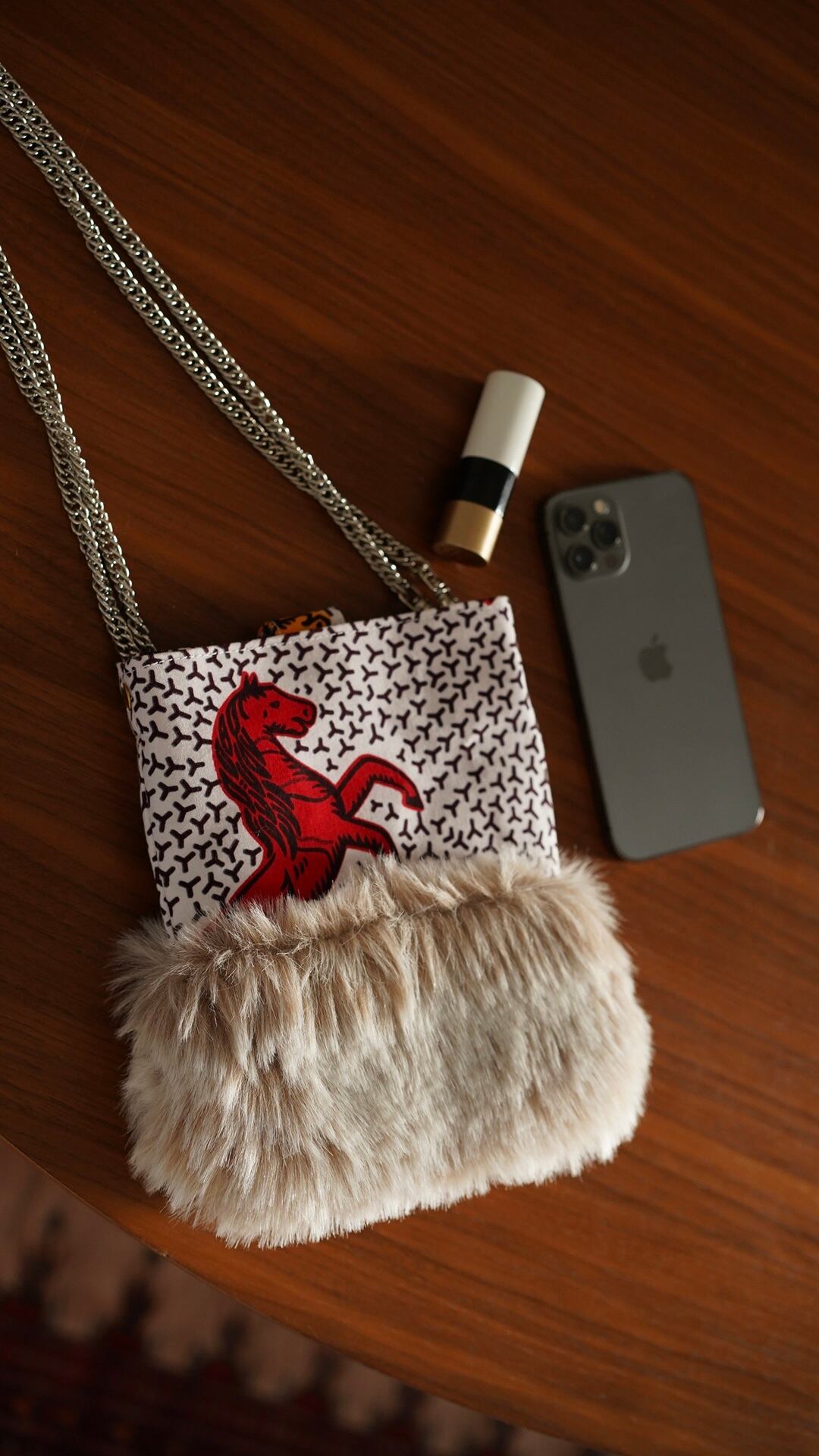 柔らかく艶やかなエコファーと、存在感のある柄生地を組み合わせたミニバッグ。日本製の上質なエコファーは、手に取るたびに贅沢な質感を感じられます。コンパクトながら印象的。コーディネートを格上げしてくれます。秋冬から春先まで、シーズンを超えて活躍します。